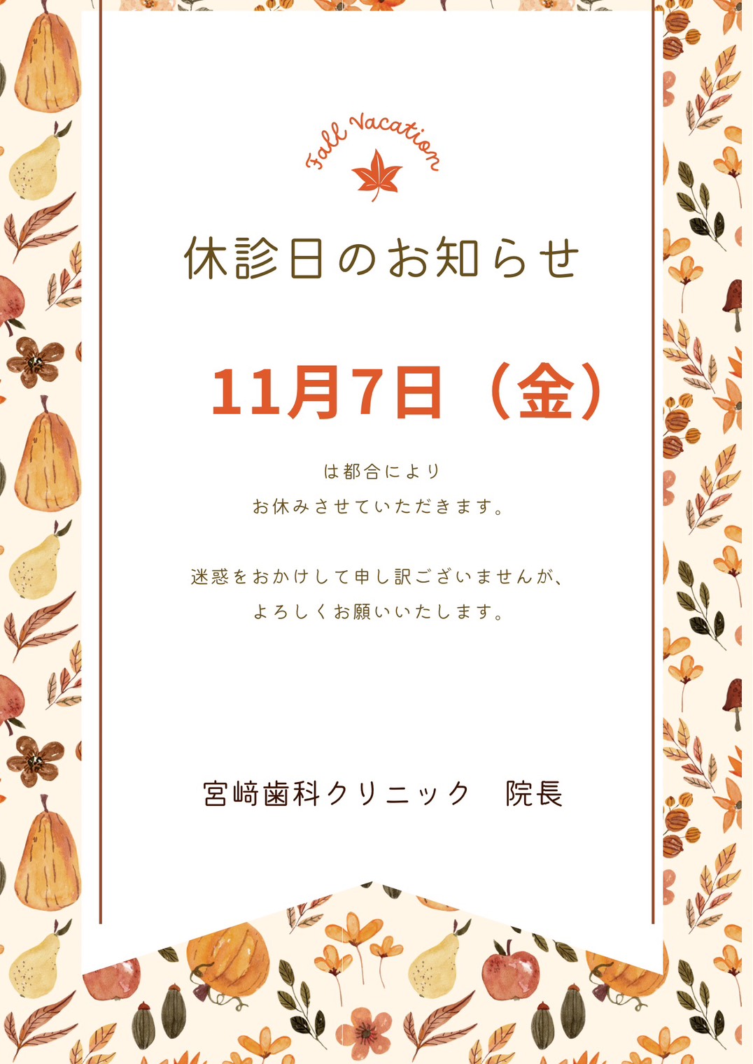 11/7(金)は臨時休診となります